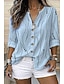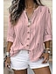 Damen Hemd Tunika Sommeroberteile Knöpfe Grafik Geometrisch Abstrakt Urlaub Vintage Täglich Langarm V Ausschnitt Normale Oberteile Täglich Ferien Ausgehen Blau Weiß Rosa Purpur Grün Sommer Frühling