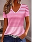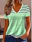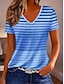 Damen T Shirt Druck Gestreift Grafik Geometrisch Bohemien Vintage Stilvoll Kurzarm V Ausschnitt Normale Oberteile Täglich Blau Rosa Violett Grün Sommer Frühling