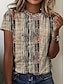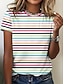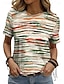 Damen T Shirt Druck Grafik Geometrisch Gestreift Vintage Stilvoll Klassisch Kurzarm Rundhalsausschnitt Normale Oberteile Lässig Täglich Blau Hellgrün Rosa Leicht Braun Schwarz Sommer Frühling