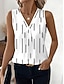 Damen Hemd Baumwoll-Leinen-Hemden Bluse Kunstbaumwollleinen Druck Geometrisch Basic Lässig Ärmellos Rundhalsausschnitt Normale Oberteile Täglich Weiß Khaki Grau Sommer