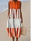 Frauen Midi Kleid Leinenähnlich Sommerkleid Shift Kleid A-Linien Kleid Urlaub Lässig Boho Strand Ausgehen Lockerer Sitz Grafik Geometrisch Ärmellos Rundhalsausschnitt Blau Rot Orange Sommer Frühling