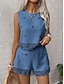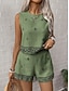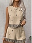 Frauen Leinenähnliche Faux Baumwoll Leinen Shorts Sets Ärmellos Rundhals Geometrischer Druck Elegant Mode Streetwear Lässig Alltäglich Outdoor Blau Grün Khaki Sommer Regulärer Schnitt