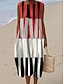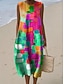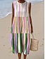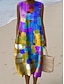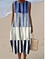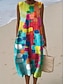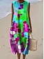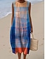 Damen Midi Kleid Leinenähnliches Shift Kleid Urlaub Casual Strand Ausgehen Lockerer Sitz Grafik Geometrisch Ärmellos Rundhals Blau Rot Lila Grün Sommer Frühling