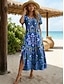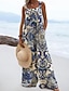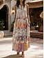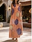Damen Maxikleid Sommerkleid A Linie Kleid Urlaub Lässig Boho Täglich Ferien Normale Passform Grafik Geometrisch Ärmellos V Ausschnitt Blau Gelb Orange Sommer Frühling