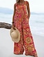 Damen Latzhose Aktiv Grafik Ärmellos Ärmellos Weites Bein Tasche Knöpfe Täglich Strand Lässiger Schnitt Blau Weiß Rote Sommer