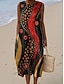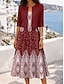 Womens Midi Kleid V-Ausschnitt Lange Ärmeln Kaftan Leicht Loose Fit A-Linie Kleid Lässig Boho Party Ausgehen Floral Grafik Geometrisch Lange Ärmeln V-Ausschnitt Rot Blau Regenbogen Herbst