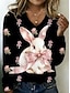 Ostern Damen T Shirt Druck Grafik Tiermotiv Geometrisch Mode Stilvoll Klassisch Langarm V Ausschnitt Normale Oberteile Täglich Wochenende Schwarz Rosa Sommer Frühling Herbst