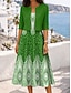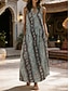 Damen Midikleid Hemdblusenkleid Freizeitkleid Boho-Kleid Mode Klassisch Modern Täglich Outdoor Urlaub Normale Passform Geometrisch Langarm V Ausschnitt Grün Sommer Frühling Herbst