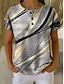 Damen T Shirt Druck Brustknöpfe Geometrisch Stilvoll Modern Lässig Kurzarm Henley Normale Oberteile Täglich Grau Sommer Frühling