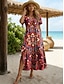 Damen Maxi Kleid Casual Kleid Casual Alltag Lockere Passform Geometrisch Kurzarm Crewneck Dunkelrot Sommer