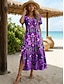 Damen Midikleid Sommerkleid Urlaub Lässig Strand Täglich Ausgehen Lässiger Schnitt Grafik Geometrisch Kurzarm V Ausschnitt Blau Purpur Orange Grün Sommer