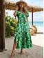 Damen Midikleid Sommerkleid Freizeitkleid Urlaub Lässig Strand Strand Party Lässiger Schnitt Grafik Blatt Geometrisch Kurzarm V Ausschnitt Blau Grün Sommer Frühling