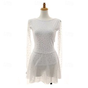 Eiskunstlaufkleid Damen Mädchen Eislaufen Kleid Weiß Patchwork Daumenloch Netzstoff Spandex Dehnbar Training Übung Professionell Eiskunstlaufkleidung Thermowarm Kristall / Strass Langarm Eislaufen
