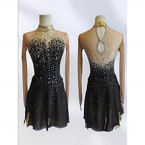 Eiskunstlaufkleid Damen Mädchen Eislaufen Kleid Schwarz Patchwork Netzstoff Hohe Elastizität Training Wettbewerb Eiskunstlaufkleidung Klassisch Kristall / Strass Langarm Eislaufen Eiskundstlauf