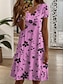 Damen Minikleid T-Shirt-Kleid A Linie Kleid Urlaub Lässig Täglich Normale Passform Blumen Grafik Kurzarm V Ausschnitt Blau Rosa Grün Dunkelblau Sommer Frühling