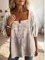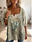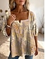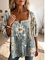 Damen Bluse Knöpfe Druck Blumen Grafik Täglich Stilvoll Basic Halbarm Quadrathals Lange Oberteile Täglich Gelb Grün Beige Leicht Blau Sommer Frühling