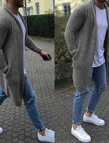 Herren Pullover Strickjacke Gerippt Stricken Normale Oberteile Gestrickt Einfach Fallendes Revers Moderne zeitgenössische Lässig Lässig Alltagskleidung Bekleidung Winter Grau M L XL
