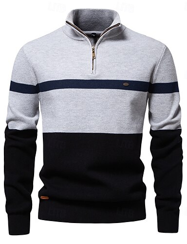 Herren Pullover Pullover mit Viertelreißverschluss Strickpullover Gerippt Stricken Normale Oberteile Gestrickt Farbblock Halber Reißverschluss Mode Lässig Urlaub Alltagskleidung Bekleidung Herbst