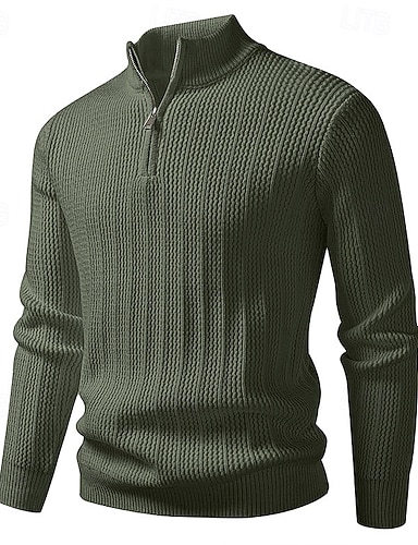 Herren Pullover Pullover mit Viertelreißverschluss Strickpullover Gerippt Stricken Normale Oberteile Gestrickt Einfach Halber Reißverschluss Mode Lässig Urlaub Alltagskleidung Bekleidung Herbst Winter