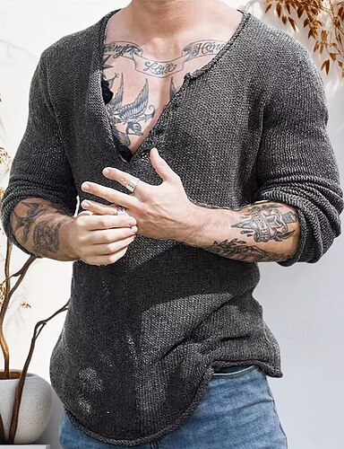 herren pullover pullover pullover rippstrick gestrickt v-ausschnitt alltagskleidung urlaub bekleidung bekleidung frühjahr & herbst grau 5xl