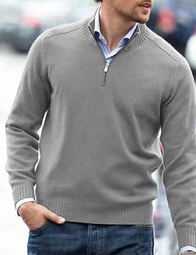 Herren Pullover Pullover mit Viertelreißverschluss Gerippt Stricken Normale Oberteile Gestrickt Schmale Passform Einfach Stehkragen Strickware Zeitgenössisch Lässig Alltagskleidung Bekleidung Herbst