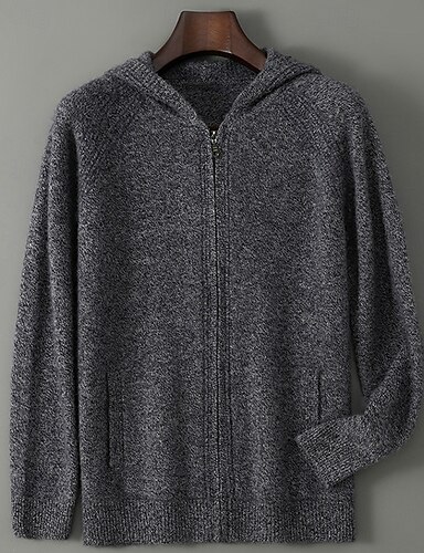 Herren Strickjacke Strickpullover Gerippt Stricken Lang Tasche Schlicht / Fest Mit Kapuze Modisch Klassisch Freizeitskleidung Verabredung Bekleidung Herbst Winter Grau M L XL