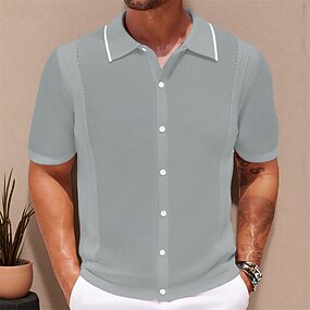 Herren Textur Muskelshirt Arbeit Lässig Revers Gerippter Polokragen Kurzarm Basic Modern Farbblock Patchwork Knöpfe Frühling & Sommer Schmale Passform Blau Weiß Grün Grau Textur