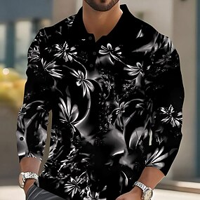 Herren Pflanzen Fluoreszierend Polo Langarm Polo-Shirts Revers Lässig Straße Athleisure Alltagskleidung 3D-Druck Knöpfe Frühling Herbst Winter Blau Purpur Grün
