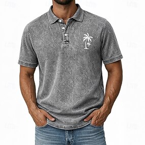 Herren Poloshirts Hemd aus 100 % Baumwolle in Säurewaschung Lässig Ferien Revers Kurzarm Mode Basic Palme Knöpfe Jahrgang Frühling & Sommer Blau Rote Purpur Braun Grün Grau Poloshirts