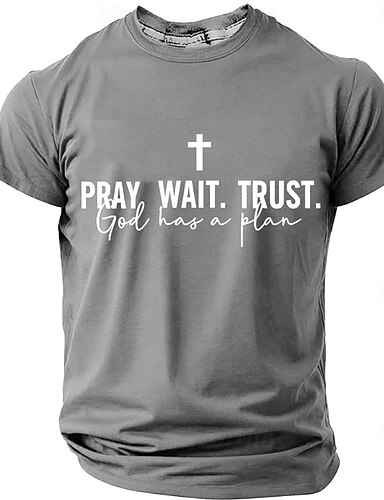 Herren-T-Shirt mit einfarbigem Kreuz- und Bibelmotiv, Kurzarm, 3D-Druck, Rundhalsausschnitt, Vintage-Retro-Stil, für Alltag und Festivals, in Blau, Schwarz und Burgunderrot, Sommer/Frühling, Größen: