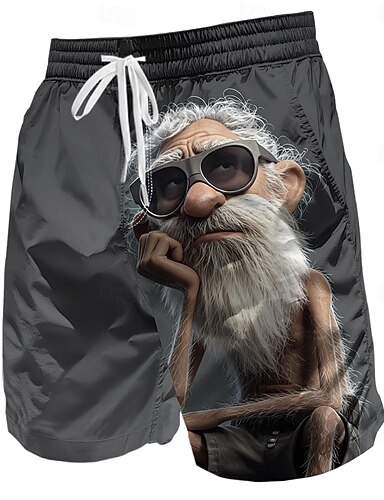 Herren Comic-Figuren Lustig Alter Mann Badehosen Badeshorts Boardshorts Mittlere Taille Retro Vintage Outdoor Urlaub Alltagskleidung Seitentaschen Netzfutter Elastischer Kordelzug in der Taille