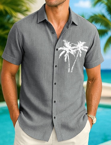 Herren Hemd Leinenhemd Sommerhemd Strandhemd Westernhemd Einfarbig Urlaub Kreuzfahrt Grün Grau Leicht Blau Kurzarm Umschlagkragen Sommer Frühling & Sommer Bekleidung Tasche