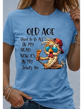 Damen T Shirt Druck Grafik Tiermotiv Cartoon Stilvoll Klassisch Lässig Kurzarm Rundhalsausschnitt Rundhals Normale Oberteile Täglich Blau Weiß Rosa Orange Sommer Frühling