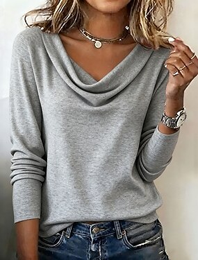 Damen Bluse Patchwork Einfarbig Stilvoll Lässig Langarm Asymmetrisch Normale Oberteile Täglich Grau Frühling Herbst