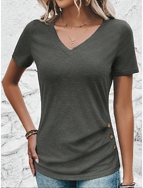 Damen T Shirt T-Shirt Einfarbig Mode Klassisch Lässig Kurzarm V Ausschnitt Normale Oberteile Täglich Ausgehen Wochenende Armeegrün Rote Purpur Rosa Grau Sommer Frühling