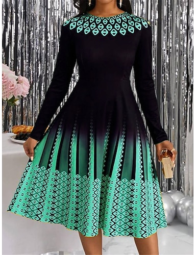 Damen Midi Kleid Lässiges Kleid Winter Kleid Schwung Kleid Mode Bescheiden Formal Outdoor Party Regulär Fit Farbverlauf Marmor Lange Ärmel Rundhals Grün Frühling Herbst Winter