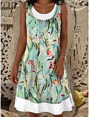 Damen Minikleid T-Shirt-Kleid Sommerkleid A Linie Kleid Urlaub Lässig Täglich Normale Passform Blumen Grafik Ärmellos Rundhalsausschnitt Gelb Blau Grün Sommer Frühling Herbst