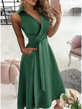Damen Midikleid Partykleid Cocktailkleid Kleid für Hochzeitsgäste Elegant Mode Party Hochzeit Besonderer Anlass Normale Passform Einfach Ärmellos V Ausschnitt Blau Schwarz Wein Rote Sommer