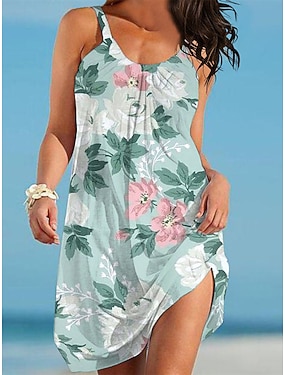 Damen Strandkleid Blumenblattdruck Spaghettiträger Minikleid Basic Casual Alltag Urlaub Ärmellos Sommer Frühling