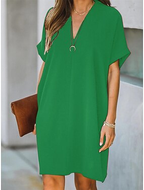 Damen Mini Kleid A-Linien Kleid Sommerkleid Einfarbig Lässig Alltag Regelmäßige Passform Grafik Kurze Ärmel V-Ausschnitt Rosa Grün Aprikose Sommer