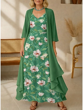 Damen Maxikleid Kleid-Set A Linie Kleid Urlaub Lässig Boho Normale Passform Blumen Grafik Dreiviertelarm V Ausschnitt Blau Rosa Grün Sommer Frühling Herbst Winter