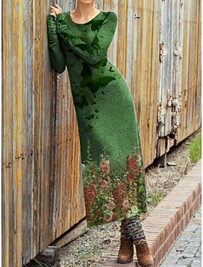 Damen Maxikleid Shiftkleid A Linie Kleid Lässig Ferien Normale Passform Blumen Grafik Langarm Rundhalsausschnitt Blau Gelb Rosa Grün Frühling Herbst Winter