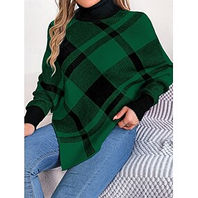 Weihnachten Damen Pullover Lässig Wohltuend Karierte Gerippte Rollkragen Gestrickte Langarm Reguläre Oberteile Strick Außen Alltag Wochenende Rot Grün Herbst Winter