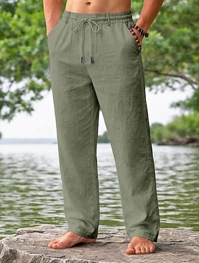 Herren Leinenhosen Sommerhose Baggy-Hosen Kordelzug Tasche Elastischer Bund Einfach Komfort Atmungsaktiv Volle Länge Lässig Täglich Outdoor Urlaub Mode Schwarz Grün Unelastisch