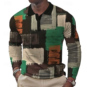 Herren Geometrisch Poloshirts mit Reißverschluss Golfshirt Langarm Polo-Shirts Hemden mit Kragen Business-Casual Urlaubskleidung Formelle Kleidung Festivalkleidung 3D-Druck