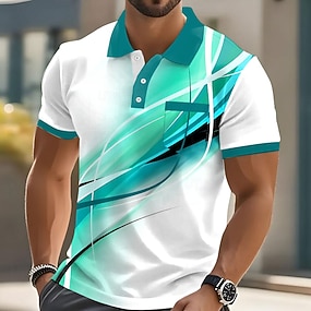 Herren Geometrisch Linie Poloshirts Kurzarm Polo-Shirts Hemden mit Kragen Business-Casual Outdoor Athleisure Alltagskleidung 3D-Druck Knöpfe Frühling & Sommer Blau Meerblau Rote