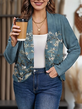 Damen Freizeitjacke Atmungsaktiv Bequem Patchwork Druck Lässig Blumen Urlaub Straße Alltagskleidung Ausgehen Offene Vorderseite Regulär Kragenlos Normale Passform Dreiviertelarm Oberbekleidung