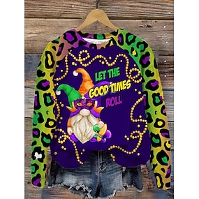 Karneval Damen Pullover Sweatshirt Grafik Mode Lässig Langarm Rundhals Reguläre Oberteile Straßen Alltag Druck Lila Grün Frühling Herbst Winter