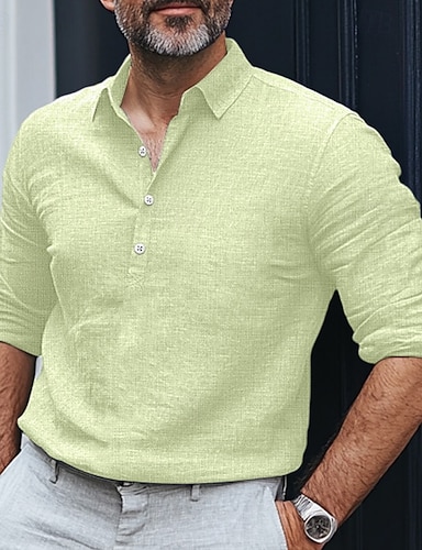 Herren Hemd Leinenhemd Sommerhemd Strandbekleidung Knopfhemd Einfach Urlaub Lässig Weiß Rosa Grün Khaki Langarm Umlegekragen Sommer Frühling Bekleidung