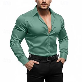 Herren Hemd Satinhemd Kleidhemd Knopfhemd Abschlussballhemd Einfach Abschlussball Hochzeit Schwarz Weiß Wein Blau Langarm Umlegekragen Ganzjahres Bekleidung